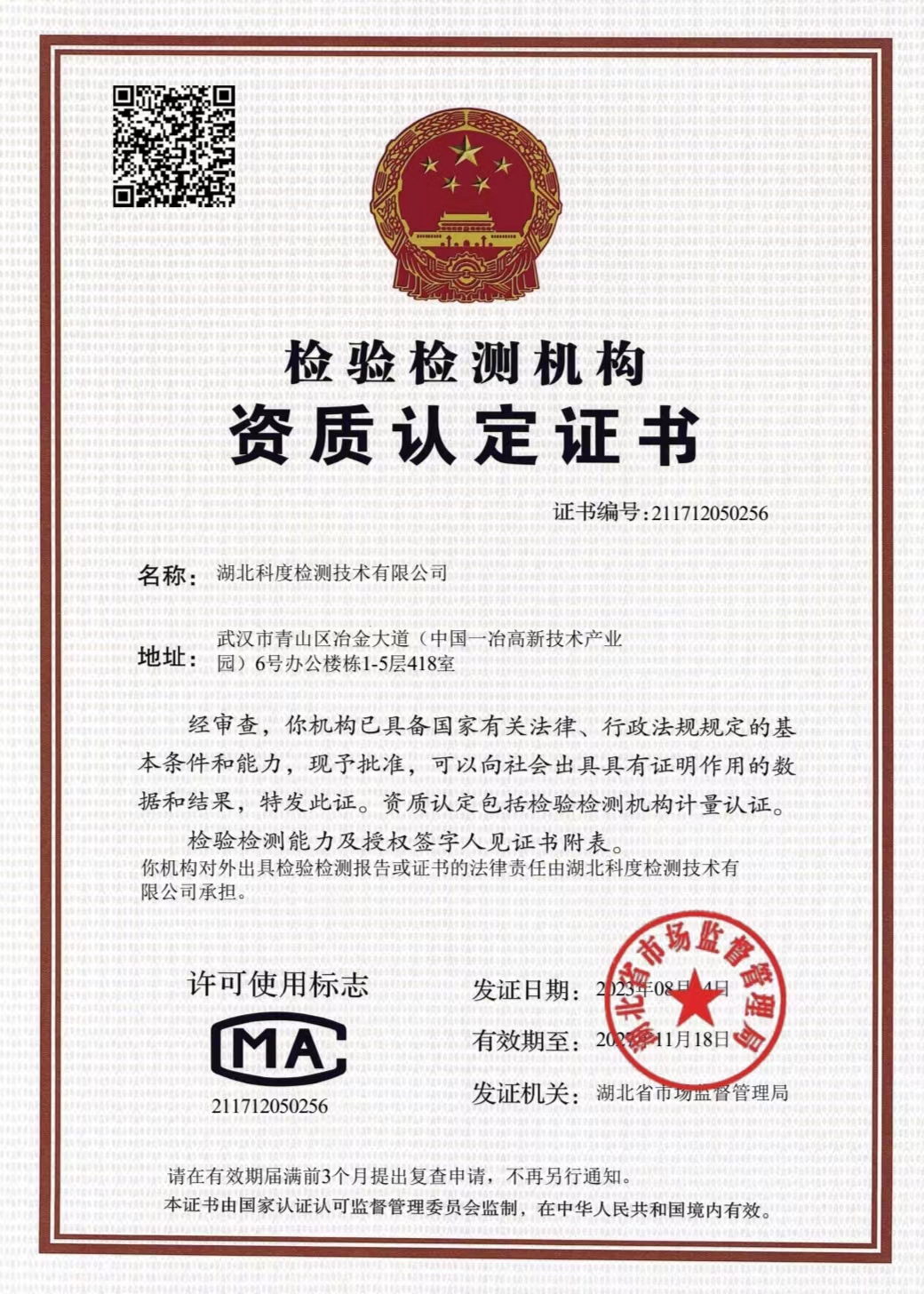 湖北科度檢測技術有限公司是一家專業(yè)從事環(huán)境類及相關領域檢測的第三方檢測機構,公司已通過湖北省市場監(jiān)督管理局CMA計量認證,可以面向社會出具權威CMA檢測報告。 我公司實驗室嚴格按照國家標準建設,擁有一大批國內外先進儀器設備及現(xiàn)代化配套設施,并有經驗豐富的中高級專業(yè)技術人員和嚴格的實驗室質量保證體系為項目運作提供強力支撐。 作為第三方檢測機構,公司始終以高度的社會責任感經營企業(yè),以“公正、嚴謹、高效”為宗旨,依托專業(yè)的技術實力為客戶提供專業(yè)優(yōu)質檢測服務,受到政府、企業(yè)和社會各界的廣泛關注和認可。